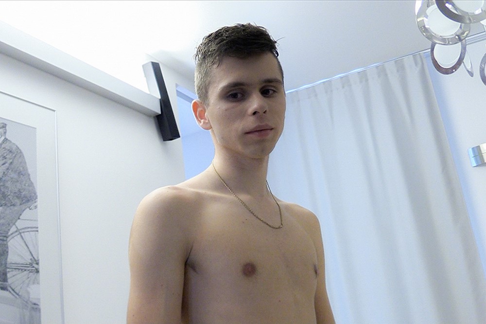 Robert was on his way home from a crappy part-time job at a fast food restaurant. He was definitely tired and not exactly happy about me trying to have a friendly chat. He was also a student so his life was a financial mess at the moment. He and his girlfriend returned from holiday in Italy some time ago and he still looked depressed about being back in Prague. The Czech Hunter wanted to cheer him up a little. And what else could cheer him up better than money? Apparently, my cock can also be very uplifting, especially when it's combined with a load of money. Robert was money hungry little whore and he really enjoyed our time together. The little bastard had a rock solid boner from the start. He almost made me cum just by sucking me. I couldn't let him go that easily.