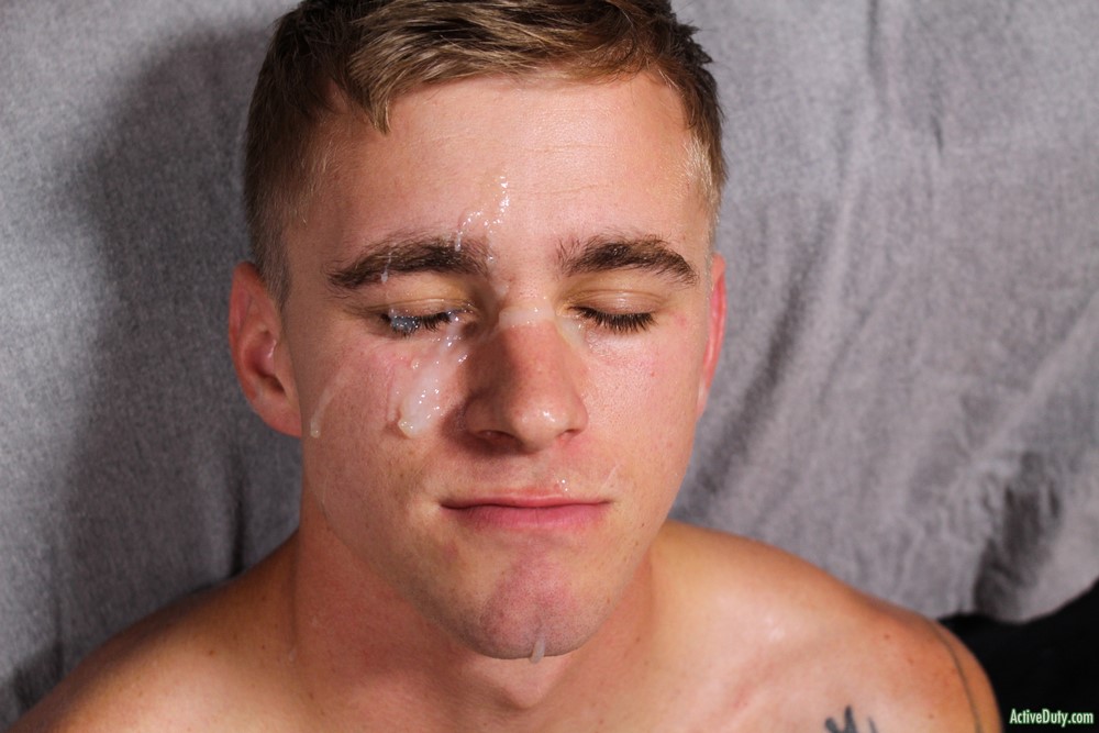 They fuck Ryan until he can't take it no longer and has to cum. The brothers have no problem with that since their balls are ready to explode from all the fucking they just did. Ryan gets on his knees and the brothers blast load after load all over his face and chest. Ryan can hold his load back no longer and the cum dripping off of him is making him nut all over himself as he finally releases his warm cum.