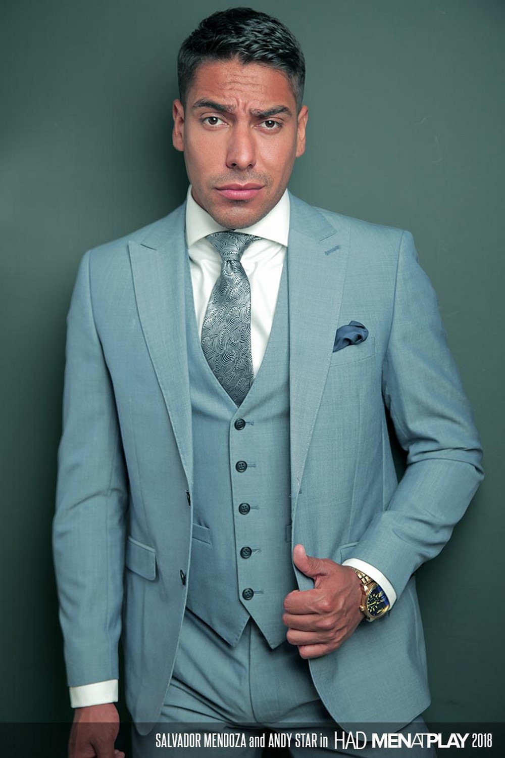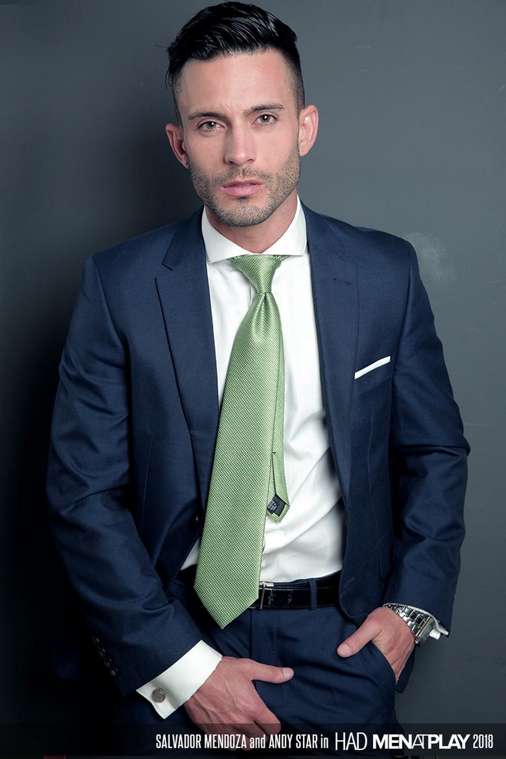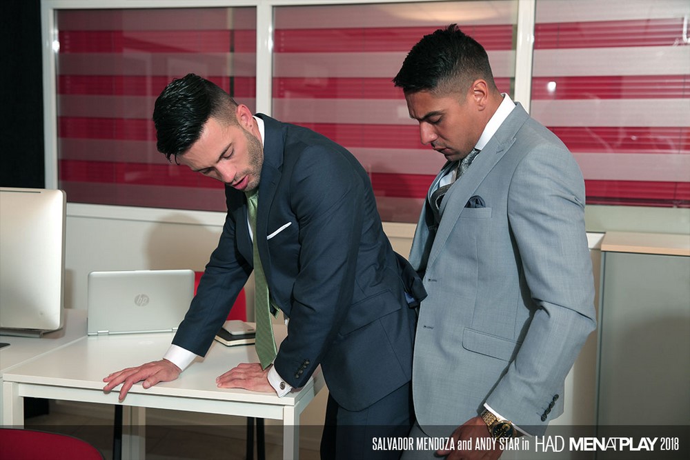 Men at Play released “HAD” today. Don’t overthink it. Had is not an acronym. But if it were, you could say it stands for Hot Amazing Dick, which is what our newest stud, Salvador Mendoza, has to offer. Dressed in a tailored gray suit, Salvador decides to have a little fun at coworker Andy Star’s expense.