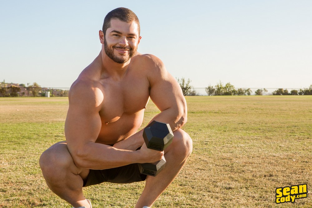 Sean Cody has a new hunk for you today! Buff hunk Arnie came to us to step outside of his everyday life, “I guess I was tired of the average corporate business life. Looking for something exciting and new…step out of the bounds a bit!” “You stepped pretty far outside the bounds!” He agreed, “Yeah, that’s true…but these bounds are a little bit more fun, if you know what I mean.” He laughed. You can tell from his huge muscles that he has a love for bodybuilding and weightlifting. Seeing those arm and peck muscles contracting while he rubbed one out was definitely something we weren’t complaining about!