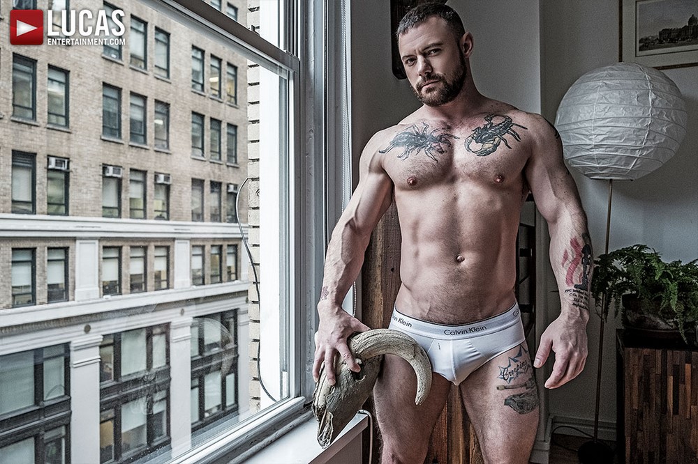 Lucas Entertainment released a new scene from “Raw DILFs” today. Sergeant Miles is Diego Gaston’s young stepfather, and he rules the household. While he’s washing up in the bathroom shirtless and only wearing a pair of jeans, he orders his stepson Diego Gaston to make him a sandwich. Diego, however, has no intention of doing what Sergeant says, leading Sergeant to discipline his stepson with a spanking.