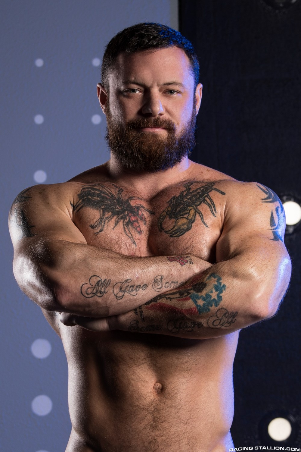 Raging Stallion‘s new and hot movie, directed by Steve Cruz, and it is called “Shut Up and Fuck Me!”. Sometimes it's nice to cut to the chase. Fuck conversation. Fuck getting to know each other. You just want to satisfy your carnal itch and get the fuck out. Don't start talking to me. I don't want your conversation. I don't want to hear your voice. Just 'Shut Up & Fuck Me'. In Part 1, Kurtis Wolfe cuts right to the chase and gets on his knees to service Sergeant Miles' giant cock. Sergeant wants more than head and bends Kurtis over to pump his ass until both sweaty studs get their beards painted white with cum.