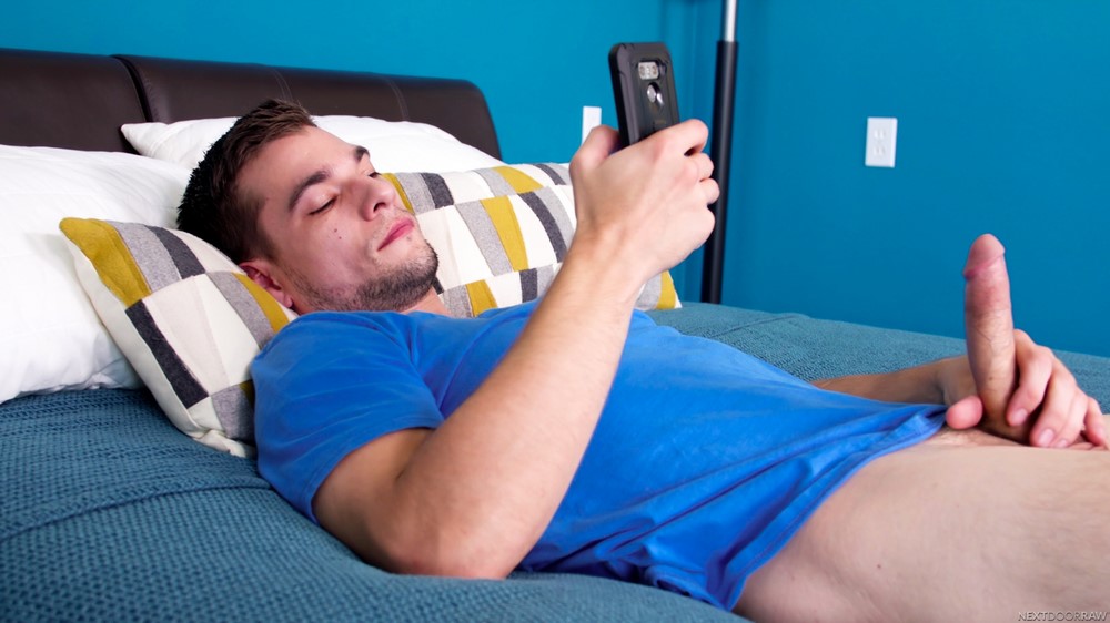 Next Door Raw released “Day Play” today. When Seth Knight comes home from the grocery store and finds his man in the bedroom stroking himself to porn, he gets pissed, telling Princeton Price he should be doing that with him, quickly falling onto the bed next to Princeton and taking his cock into his mouth. Princeton has to admit the upgrade is much better, and so he sets down his phone and pushes Seth's head down deeper onto his hard dick.