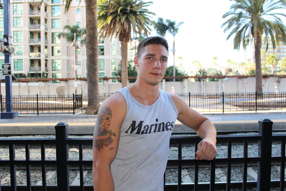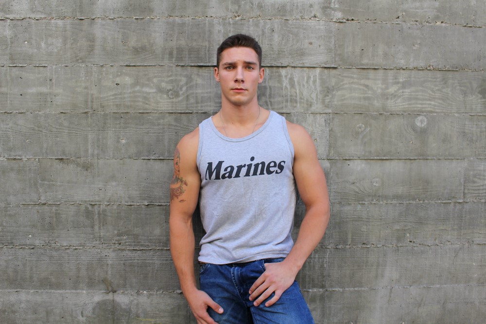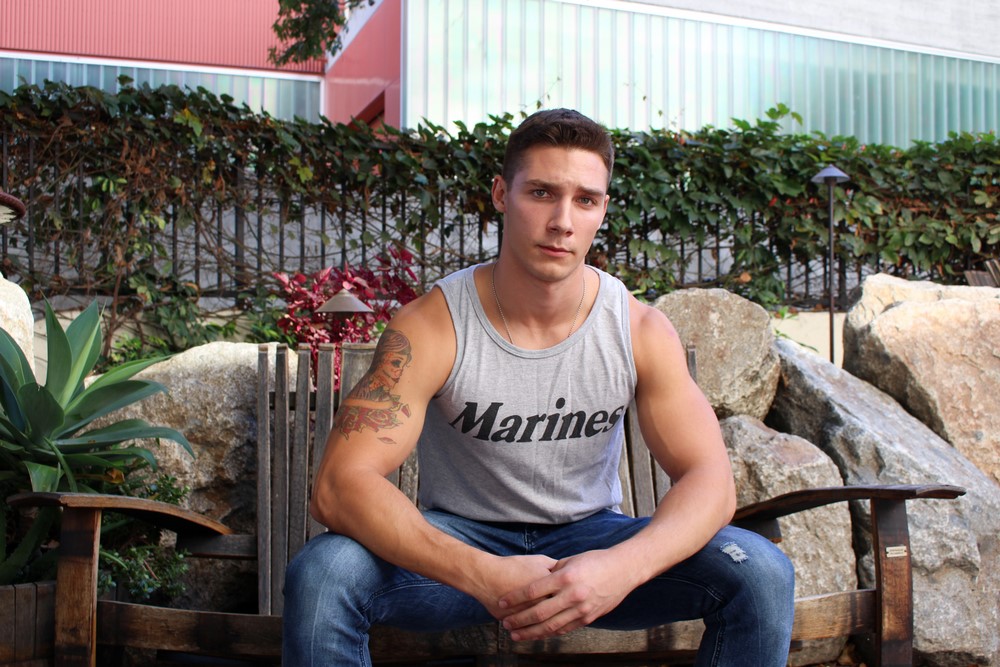 The Active Duty of today: Spencer Laval is his name and by the end of this scene his name will be engraved into your mind. His body is flawless and his build is what a true soldier in the field looks like. He drops his clothes with amazing speed revealing his beautiful cock which is thick with a sexy thick vein right down the middle.