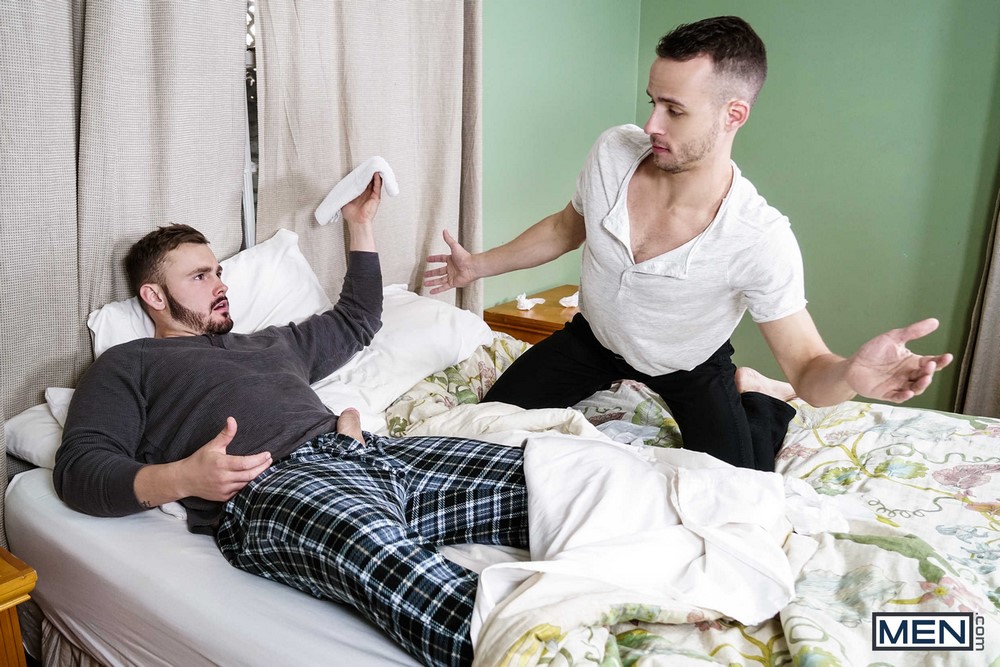 Men.com ‘s sub site Str8 2 Gay released “Chicken Soup For The Cock” today. Trevor Long is sick and recovering in bed when Nate Grimes arrives with some soup. Nate can’t help but pull Trevor’s cock out while he’s in bed; with his eyes covered by a cloth, Trevor thinks his girlfriend has arrived in a kinky mood. His hard dick in a warm mouth feels so good, he keeps Nate around after the initial shock to finish the job he started.