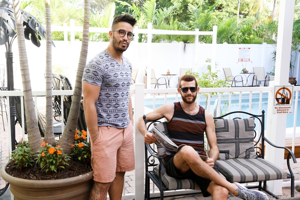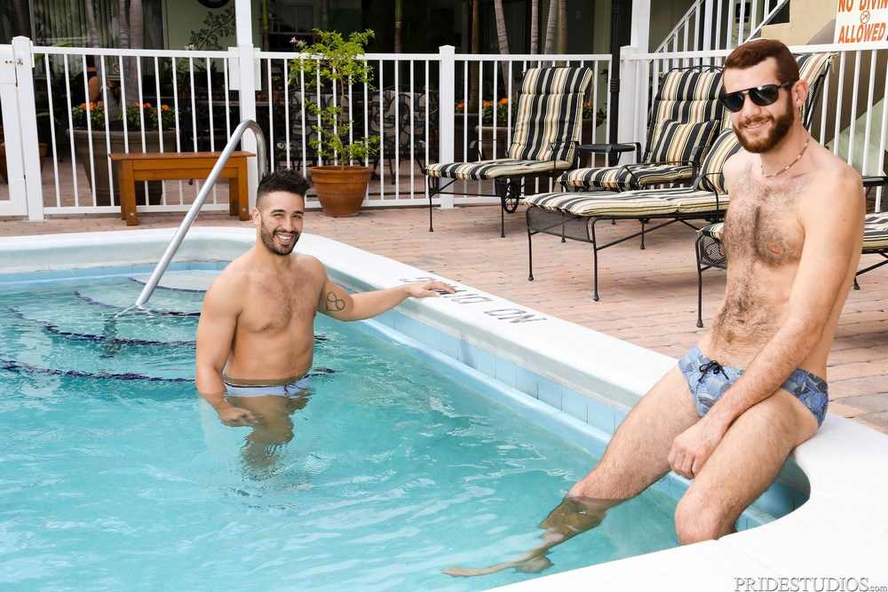 Pride Studios released “This And That” today. Landon Kovak is sunning himself poolside when Trey Turner comes swimming up. They start up a conversation and discuss where each other are from plus some other small talk. Landon asks Trey for advice on where to go shopping and what to do in South Florida. Trey shares some thoughts and tells Landon he has to leave to meet friends at the mall and perhaps they will see each other later.