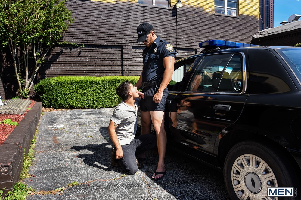 Gay porn mega site Men.com‘s sub site Drill My Holle released part one of their hot new series “Dick Patrol” today. Vadim Black gets stopped for speeding while on a suspended license and can't afford to pay the tickets or time. Ashton McKay, the cop, is corrupt enough to take in some ass in exchange for a pass go.