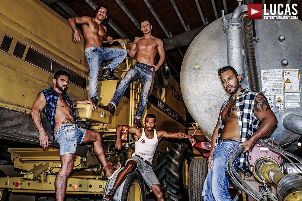 Lucas Entertainment has released a new and hot orgy scene today. There’s a lot of work going on around the farm: Viktor Rom, Mario Domenech, and Alex Kof are hard at work making repairs to the equipment. Alejandro Castillo brings Jacen Zhu over to the equipment garage to offer everyone some water. But it’s his throat and ass the guys are interested in, and each guy gets his turn with Jacen. At 4:50 you can see Jacen working on all of the uncut cocks as he gets his ass licked. And at 7:45 the fucking begins with Alex raw-dogging Jacen while he makes out with Alejandro and Mario sucks his hard-on. Viktor is close behind to be the second to plow Jacen bareback.