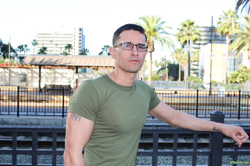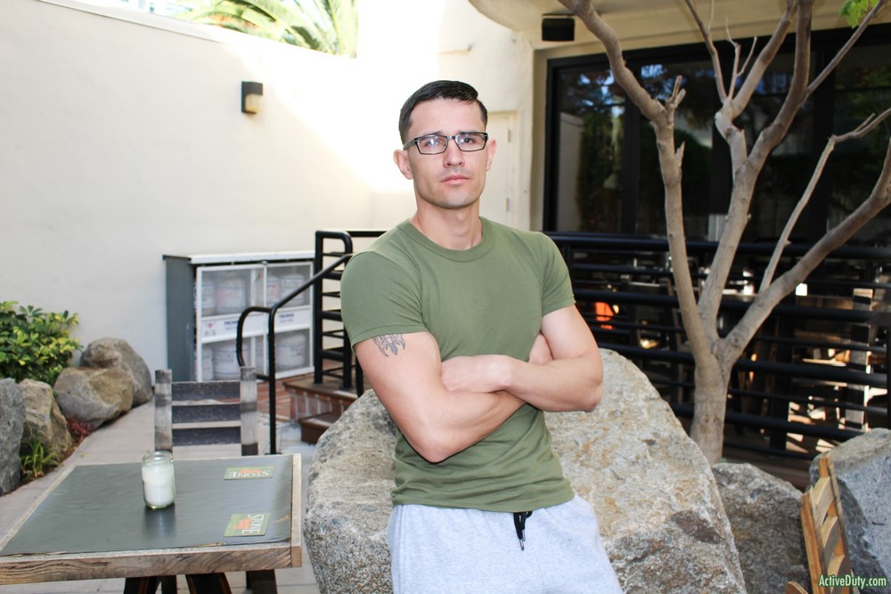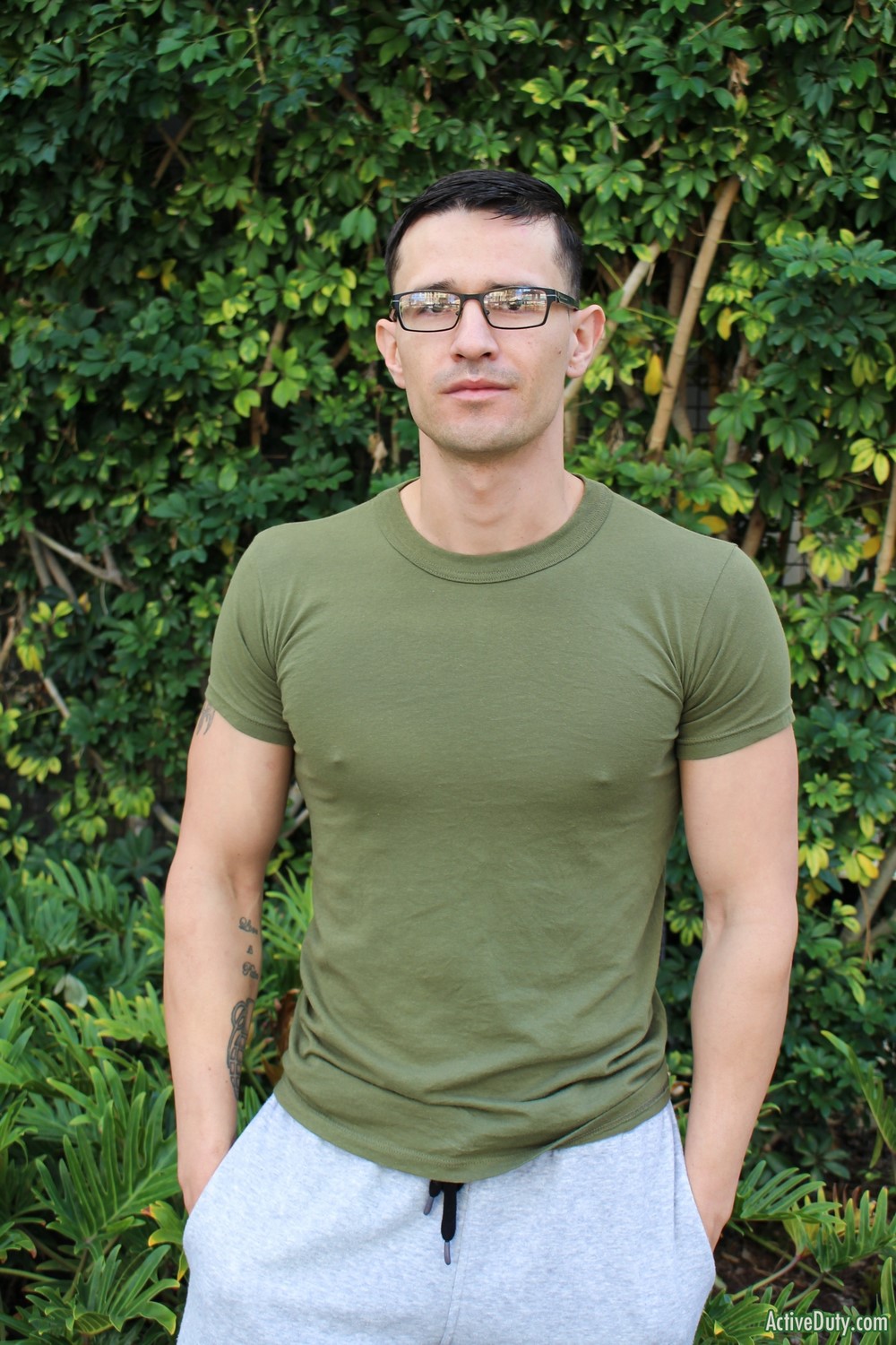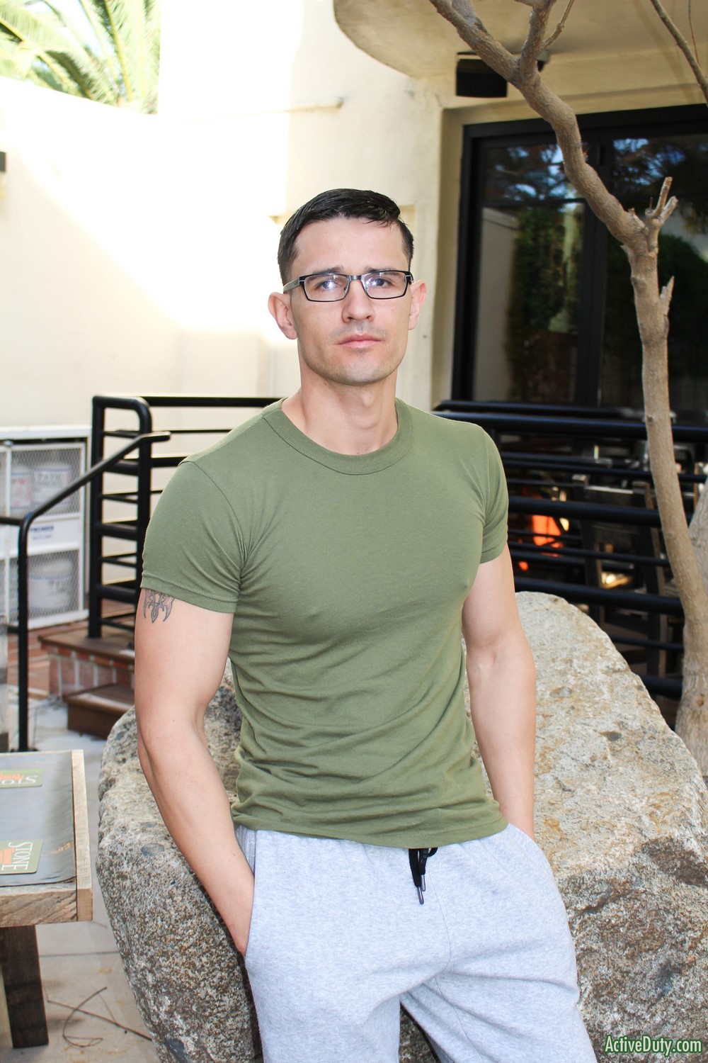 Active Duty released at new solo scene today. Woody Johnson isn't skinny by any means but rather he's built amazingly well. If you like your men with glasses well than Woody looks super dam sexy in his frames. He's quiet and well reserved but that cock on this beautiful man is one big Johnson. It just keeps on growing and growing till its rock hard and he's using both hands to stroke his big dick.