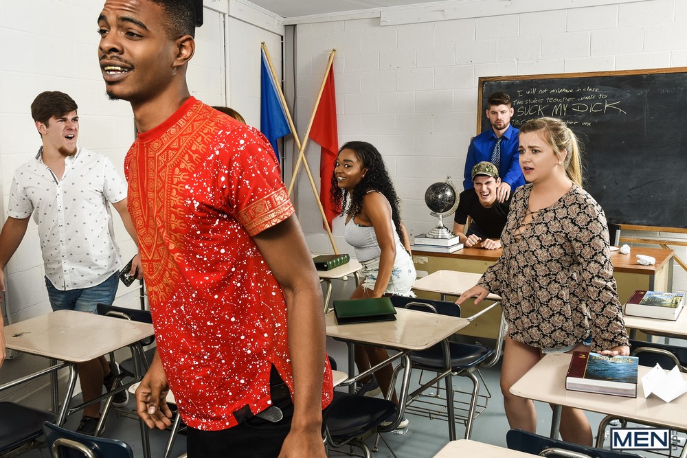 Gay porn mega site Men.com‘s sub site Big Dicks At School released “Dicktention” today. Blue-eyed Connor Halsted has had enough with the students in his detention class, and he’s fed up with dark-haired troublemaker, Xavier Ryan, whose lean bottom is just right for the kind of punishment muscular Connor has in mind. He bends the tall cutie over his desk and shoves his big dick inside his hole as deep as he can get it until he busts a nut all over Xavier’s face.